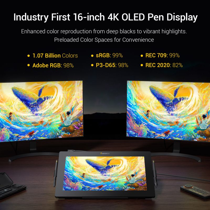1. 具有蝕刻表面的 4K OLED 顯示器提供邊到邊無縫、自然的繪圖體驗。