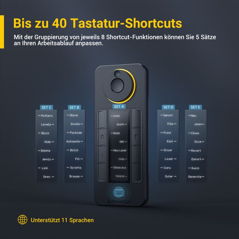 Nein. Der Fokus liegt aktuell auf zuverlässigen, einfach zu bedienenden Tastenkombinationen. Kombinationen wie Strg+Z sind möglich, aber keine komplexen Makros oder Skripte.