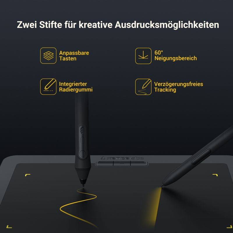 Jedes unserer Tablets ist standardmäßig mit zwei unterschiedlich großen Stiften ausgestattet, die vollständig an Ihren Workflow angepasst werden können.