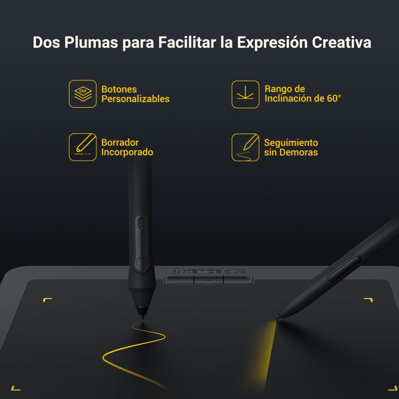 Cada una de nuestras tabletas incluye dos lápices de diferentes tamaños, ambos totalmente personalizables para su flujo de trabajo. El lápiz más ancho de 3 botones tiene tres botones programables + borrador para transformarlo en una herramienta totalmente personalizada. El lápiz delgado de diámetro más pequeño viene con dos botones asignables + borrador.