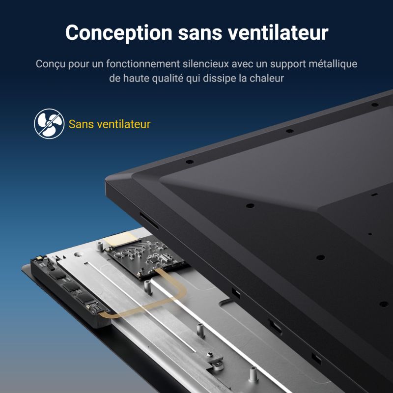 L’écran est laminé optiquement, supprimant la parallaxe (écart visuel perçu entre la pointe du stylet et le curseur) et produisant une image lumineuse et nette.