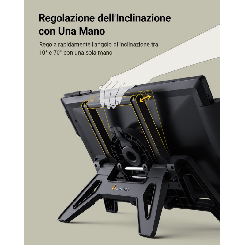 Migliora il tuo spazio di lavoro con il Multi-Axis Stand Xencelabs per Pen Display 24. Offrendo una rotazione di 90° in entrambe le direzioni, un'inclinazione regolabile da 10° a 70° e una maniglia integrata per la portabilità, è perfetto per gli artisti che necessitano di flessibilità in qualsiasi ambiente. Ideale per transizioni fluide e supporto ergonomico.