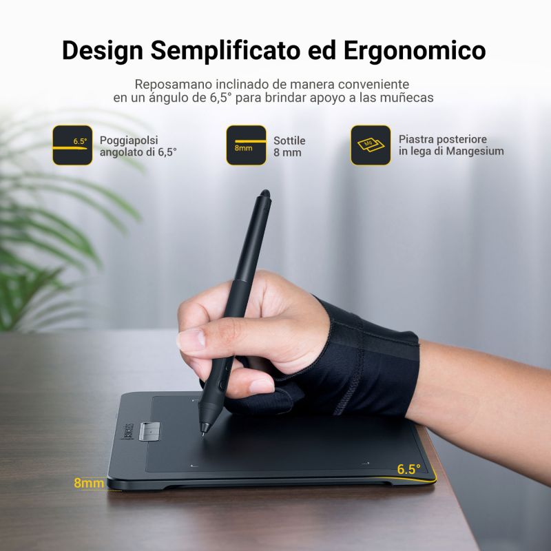 Progettata con il contributo di artisti leader del settore, la nostra Tavoletta Grafica Small con il suo design minimale dalle dimensioni compatte privilegia il flusso di lavoro, il comfort, l’uso intuitivo e la portabilità. Inoltre è dotata di accessori e strumenti aggiuntivi per fornire ai professionisti una soluzione conveniente per una naturale e reale esperienza di disegno.