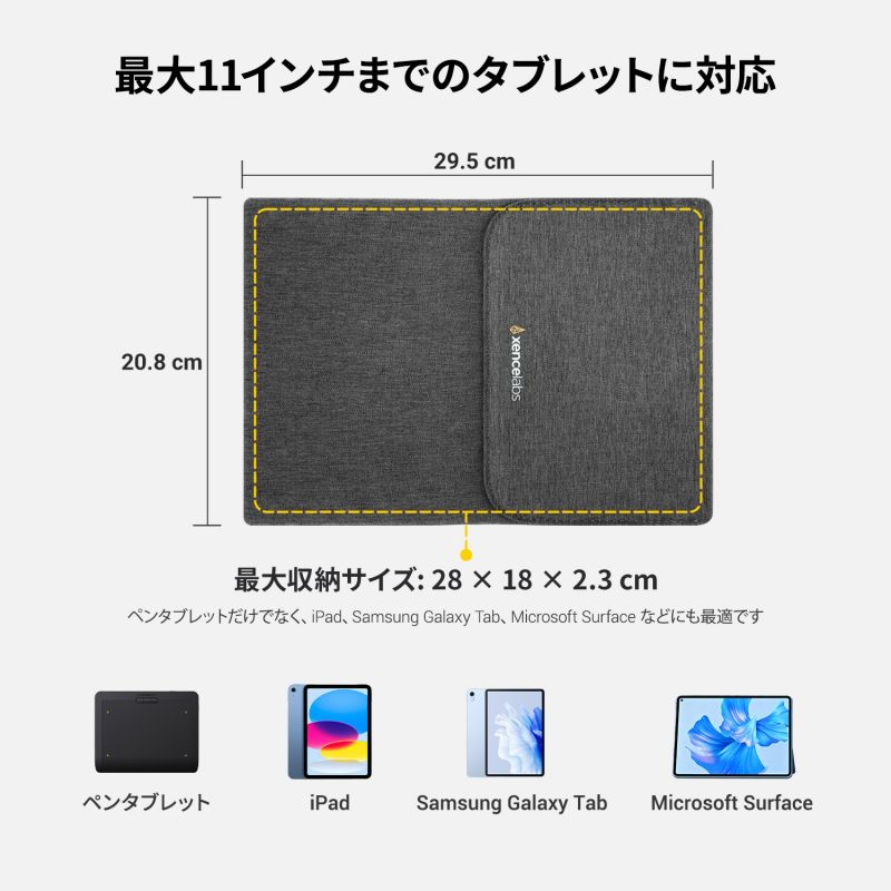Xencelabsペンタブレット Small専用の保護ケースは、デザイン性と機能性を兼ね備えたスリーブバッグです。クリエイターや学生のために設計された本製品は、タブレット本体をしっかりと保護しながら、毎日の持ち運びを快適にサポートします。