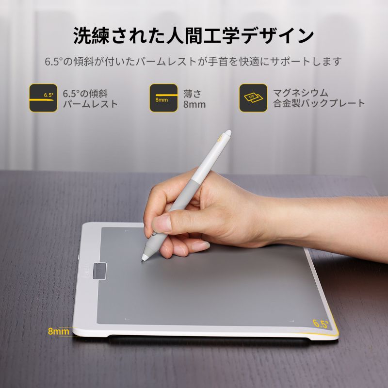 8192段階の筆圧感知&±60°傾き検出を搭載。