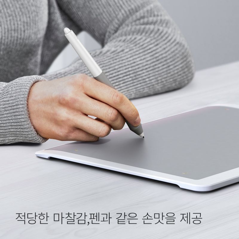 펜 타블렛 미디엄의 작업 영역은 극세사 텍스쳐 표면으로 마모에 강하고 미끄럼이 없습니다. 보속된 펜들을 사용하면 마치 펜이 종이에 그림을 그린 듯한 느낌을 갖게 합니다.