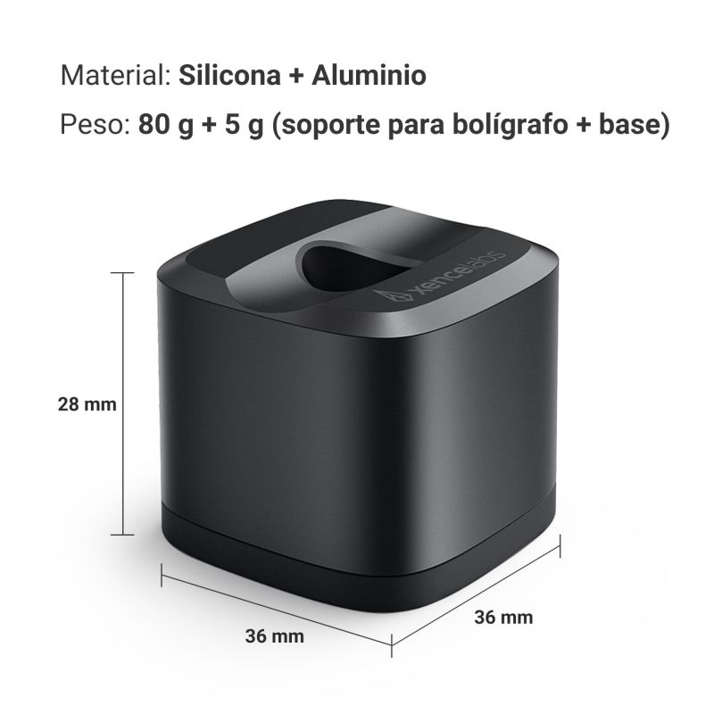 Su tamaño compacto (36 × 36 × 28 mm) ahorra espacio en tu escritorio, mientras que la base antideslizante mantiene el bolígrafo seguro en su lugar. Su diseño ligero y portátil lo hace perfecto para la oficina, el hogar o un estudio.