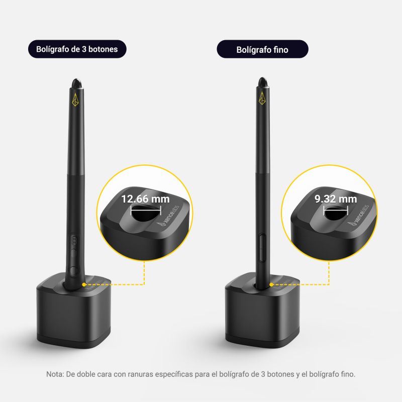 Altamente compatible: puede sostener bolígrafos en ambos extremos. Los orificios de cada extremo son de diferente tamaño, lo que permite un ajuste perfecto para nuestro bolígrafo de 3 botones y nuestro bolígrafo fino. La base está separada del cuerpo, lo que le permite cambiar el cuerpo al lado que necesite en cualquier momento. Además, el soporte para bolígrafos se adapta a la mayoría de los bolígrafos digitales, independientemente de la marca o el modelo que utilices.