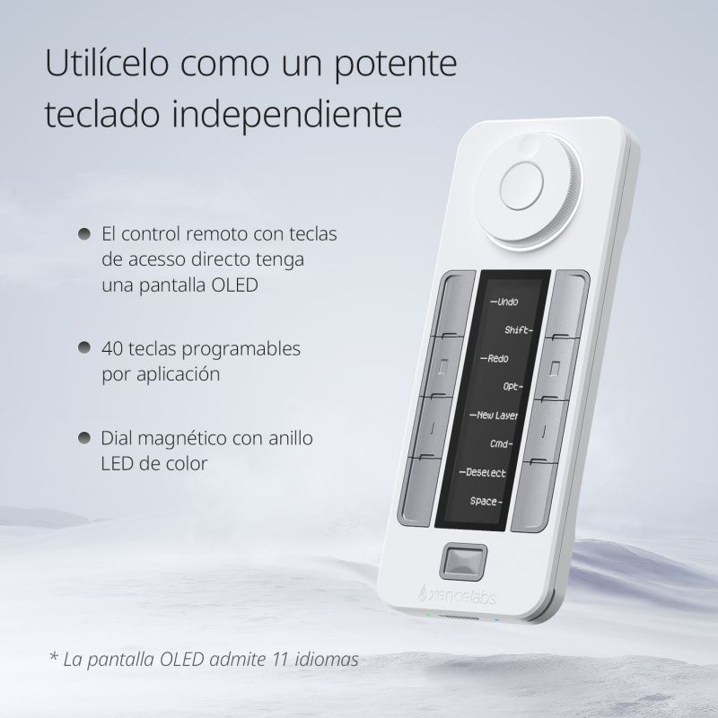 Esta es la primera vez en nuestra industria que un control remoto con teclas de acesso directo tenga una pantalla OLED. Con la pantalla OLED, las funciones son claras de un vistazo. Nuestro driver descargable le permite personalizar 40 teclas de acceso directo por aplicación.