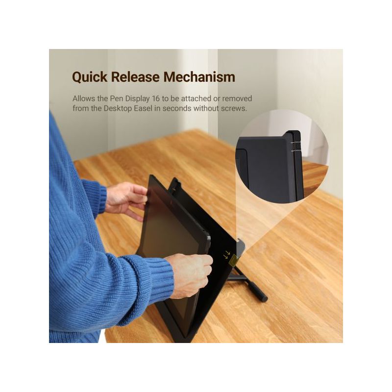It adds VESA compatibility, and the quick release feature ensures that the pen display can be ready to move within seconds.