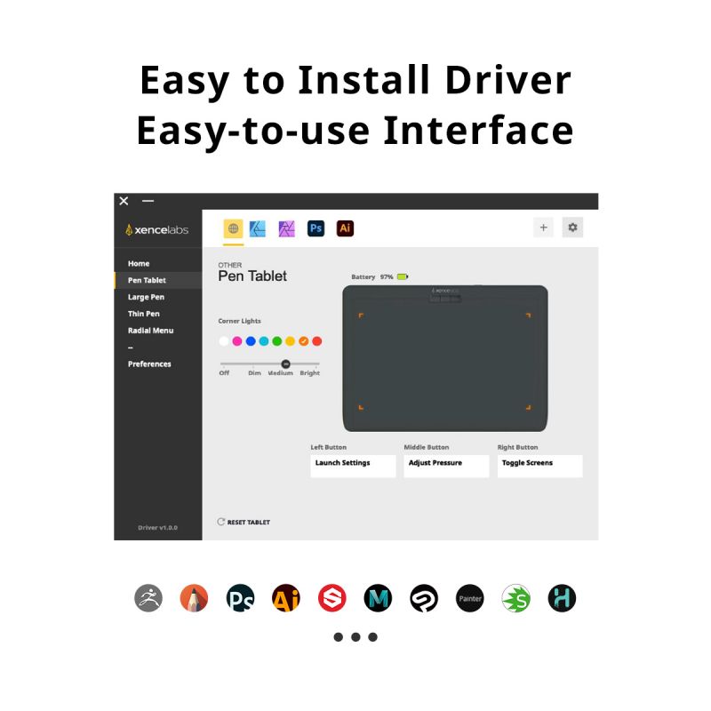 Two different-sized pens come standard with each of our tablets, both fully customizable to your workflow. The wider barreled, 3 Button Pen has three programmable buttons + eraser to transform this pen into your fully customized tool. The smaller barreled, Thin Pen handles like your favorite pen or pencil and has two assignable buttons + eraser.