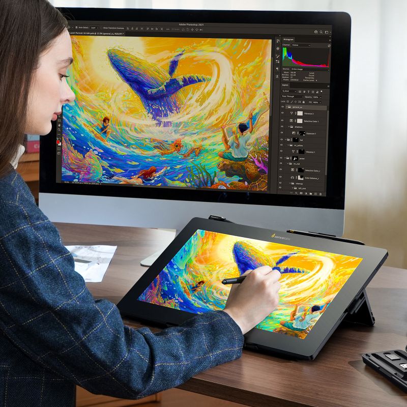 Virtual Tablet Mode™: Use the Pen Display 16 and Xencelabs Pen to directly control and interact with objects on another display, giving you a seamless extension of your creative workspace.