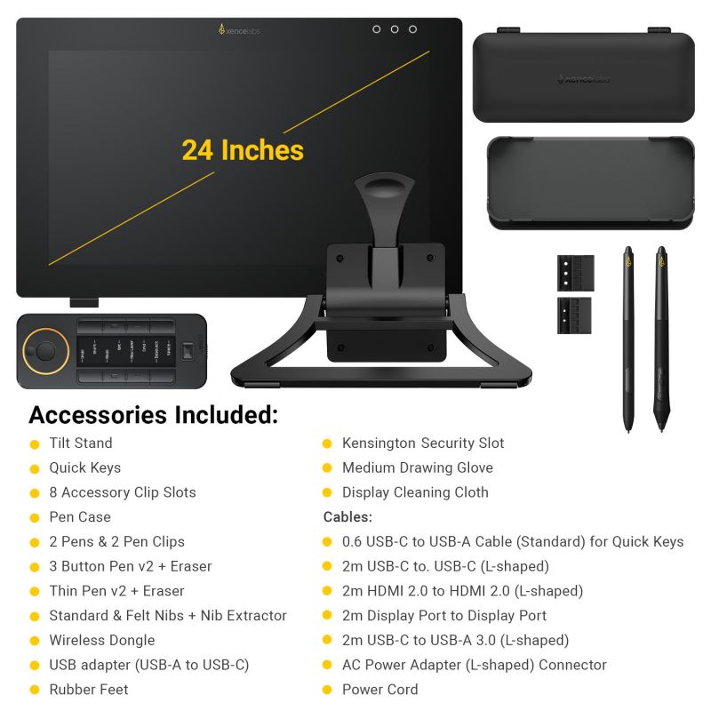 4K Ultra HD Display: From the brightest highlights to the deepest shadows, the 24-inch 4K screen captures every detail with stunning accuracy. Supporting over a billion colors, your artwork showcases rich and realistic visuals.