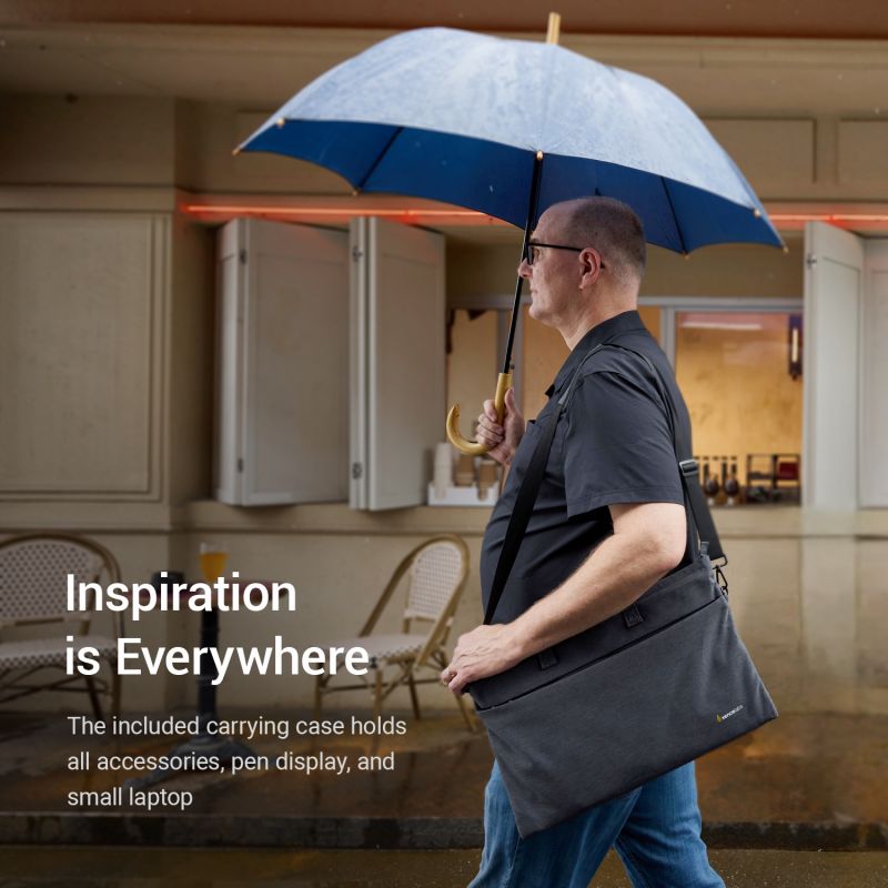 Portable Design with Protective Case: Slim, lightweight, and travel-ready. The included carrying case securely holds the Pen Display 16, accessories, and most laptops, making it easy to create anywhere.