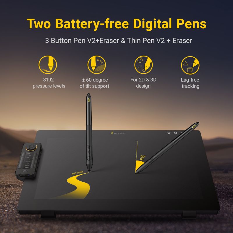 Dual Stylus Pens: Includes both the 3 Button Pen v2 and Thin Pen v2, each with an eraser and customizable settings per application. Perfect for different grip preferences and workflows.