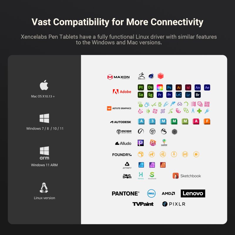 The tablet features a seamless and gently curved palm rest to maximize comfort, as well as adjustable LED lights, which help define the active drawing area. The smaller footprint of this pen tablet is optimal for creating graphics layouts, or when editing involves control points, transformation handles or filters. With a drawing surface aspect ratio of 16:9 native, the active area maps exactly to most industry-standard monitors out of the box. The Pen Tablet Small ships with a protective carrying case for your tablet, your accessories including the USB cable, a drawing glove, and the pen case that contains both digital pens, a dongle, adapter, nibs, and nib extractor.