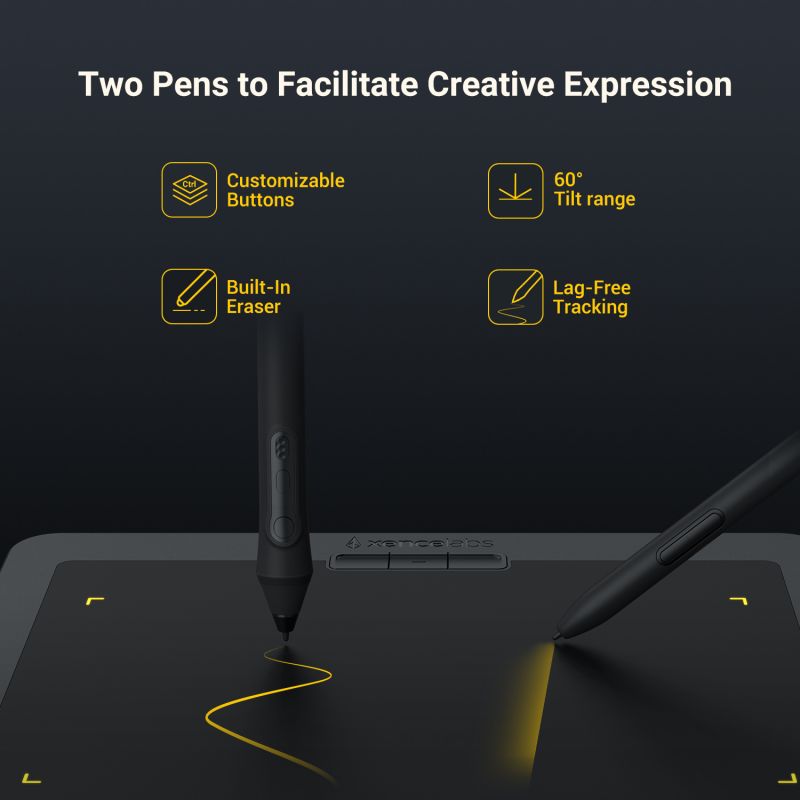 Two different sized pens come standard with our tablet, both fully customizable to your workflow. The wider barreled, 3 Button Pen has three programmable buttons + eraser to transform this pen into your fully customized tool. The smaller barreled, Thin Pen handles like your favorite pen or pencil and has two assignable buttons + eraser.
